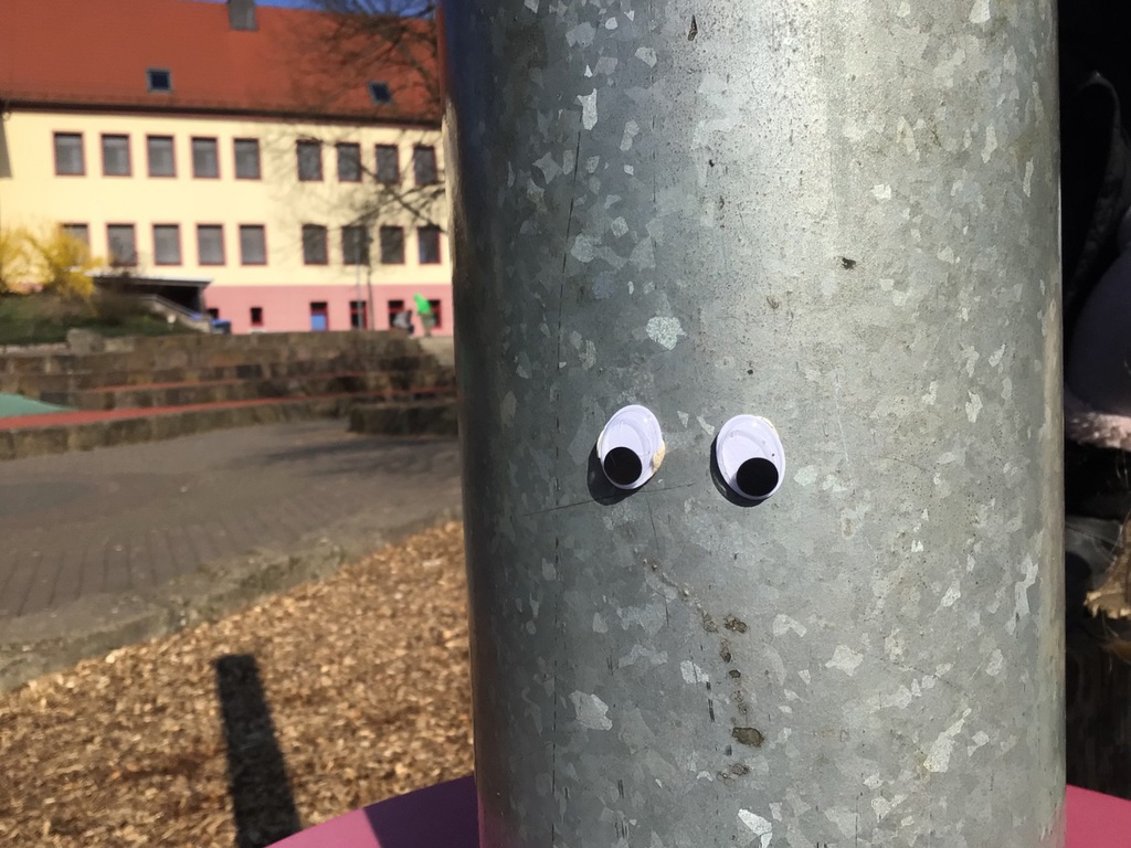 Die Kinder der Klasse 1b gingen bei schönstem Frühlingswetter auf unserem Pausenhof auf die Suche nach lustigen Gesichtern. Immer zwei Kinder hatten zusammen ein Tablet und Wackelaugen dabei. Mit viel Freude gingen sie auf Entdeckungsreise und fotografierten ihre tollen Ideen, damit wir sie anschließend gemeinsam anschauen konnten.