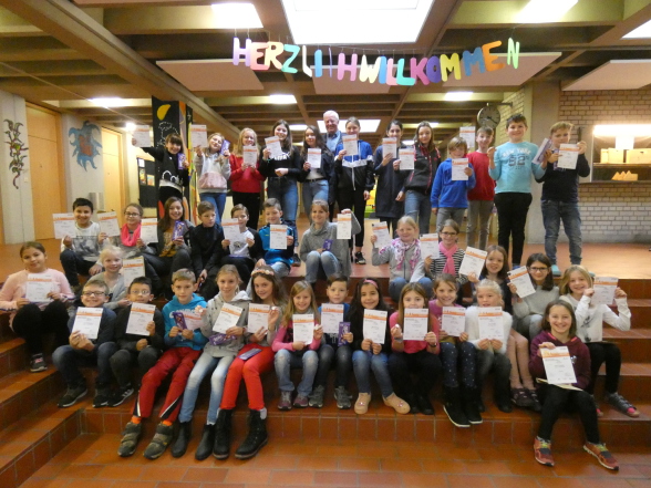 Sportlich, aber auch vielseitig muss man sein, um das Sportabzeichen zu schaffen. Insgesamt 48 (!) Schülerinnen und Schüler freuen sich über das Abzeichen und die Urkunde, die sie von Herrn Schneiderbanger überreicht bekommen haben. Oder freuen sie sich vielleicht mehr über die Schokolade, die es auch noch dazu gab!?